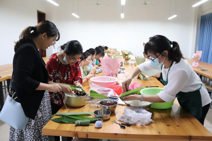 浓情六月,粽叶飘香。为了让教师切身体会到手工制作的快乐,新捕京3522com全体女教工参加了该活动。活动设置了包粽子和做香囊两个环节,大家其乐融融。活动过程中,大家也会互相请教,相互协作,都乐在其中。最终,每个人都完成了自己的作品。