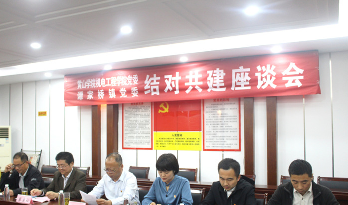 会前,在镇党委书记刘霞光、镇长周亮的陪同下,新捕京3522com党委书记蔡康松、党委副书记院长施云贵、党委副书记夏广平、党委成员以及党支部书记实地调研东黄山国际小镇。随后,镇长周亮介绍全镇发展情况,新捕京3522com党委书记蔡康松介绍学院概况。最后,谭家桥镇党委书记刘霞光和新捕京3522com党委书记蔡康松作为代表签订《党组织结对共建协议书》。