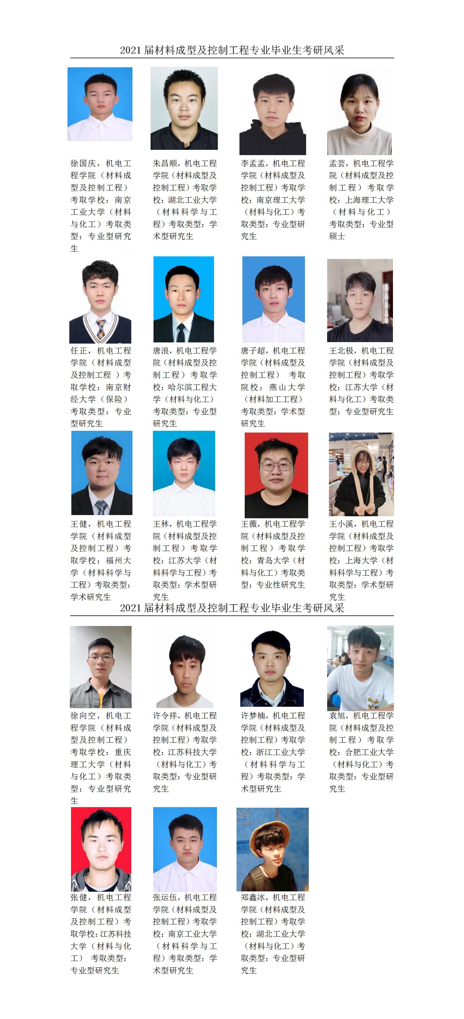 2021届材料成型及控制工程专业毕业生考研风采