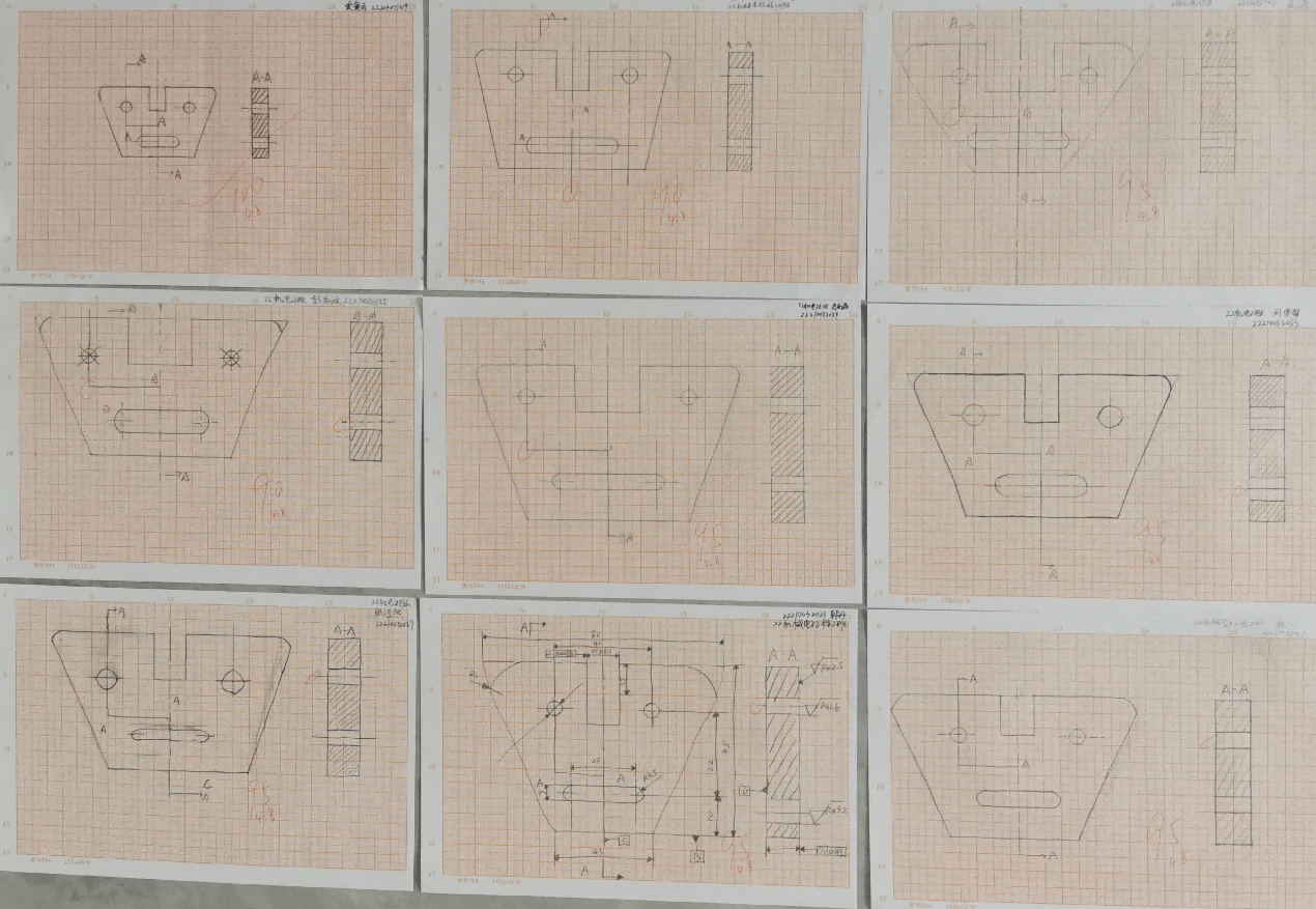 在徒手绘图实践中,要求学生在没有绘图工具的场合下,掌握徒手绘图的技能,根据所给图形,自定比例,在方格纸上画出平面图形。该实践劳动让学生了解在设计、测绘、修配机器时,绘制草图的重要性,培养学生在条件不足、环境困难甚至逆境中,勇于创造条件,灵活运用所学的知识和技能,最终克服困难的奋斗精神。