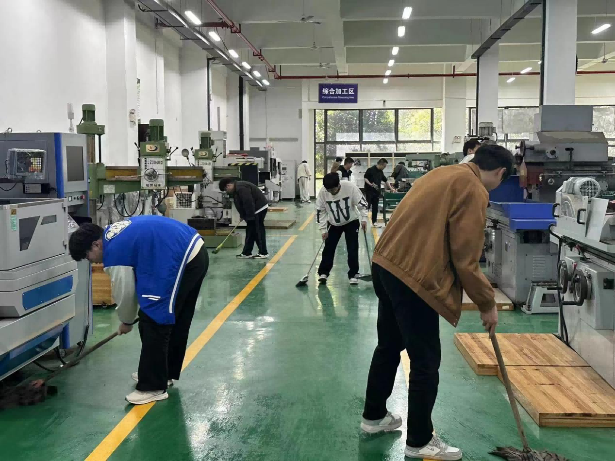 在工训设备维护实践中,要求学生在指导老师的带领下,开展工训设备维护保养和故障检测等工作。该实践劳动让学生在油污、异味等恶劣环境中感受生产过程的艰辛,产品的来之不易,帮助学生养成吃苦耐劳的坚毅品格,体会大国工匠们“敬业”“坚忍”的精神,深刻理解工业设备保养的重要意义。