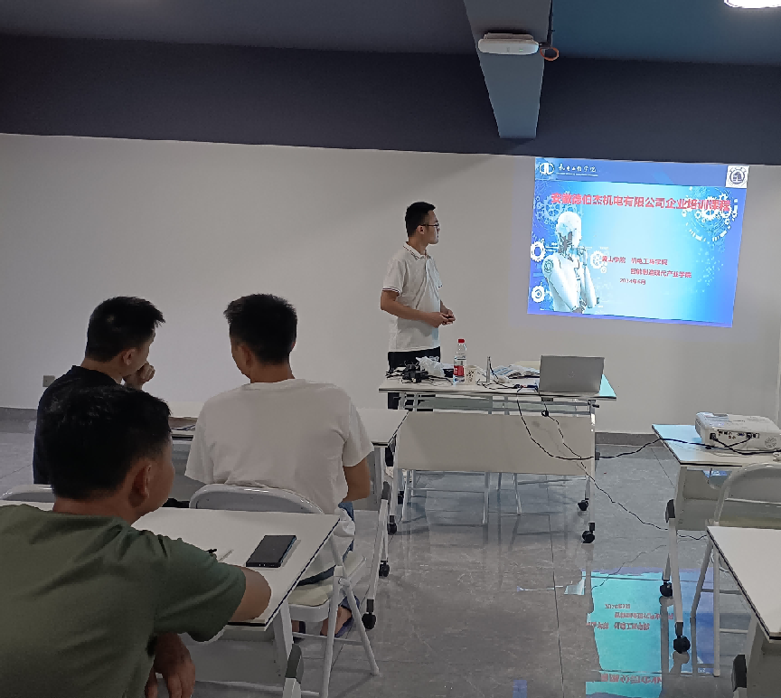 为提高企业员工理论素养,创新校企合作新模式,经过校企多轮研讨,历时半年的精心准备,2024年6月—9月,新捕京3522com在安徽德伯杰机电有限公司开展了“企业实战培训项目”。我院4名教师为企业近20名优秀员工开展培训,培训内容涵盖机械制图、互换性与技术测量、机械加工工艺、工程材料及成型技术等四个模块。