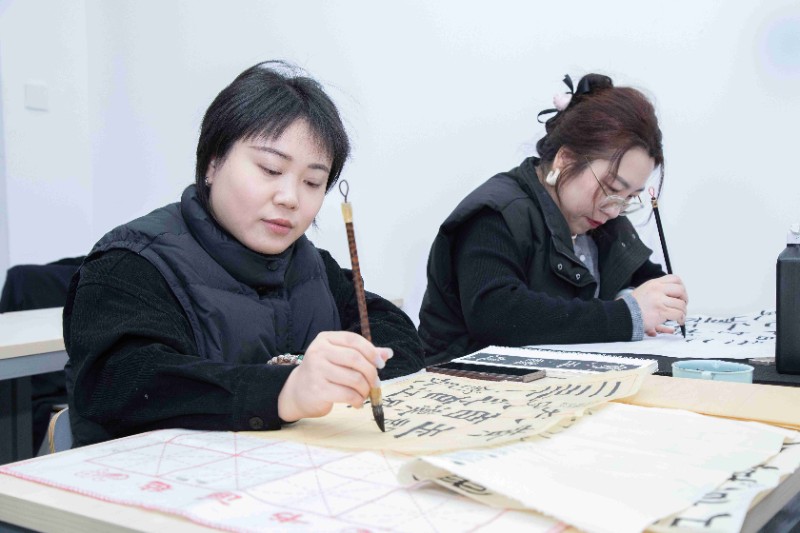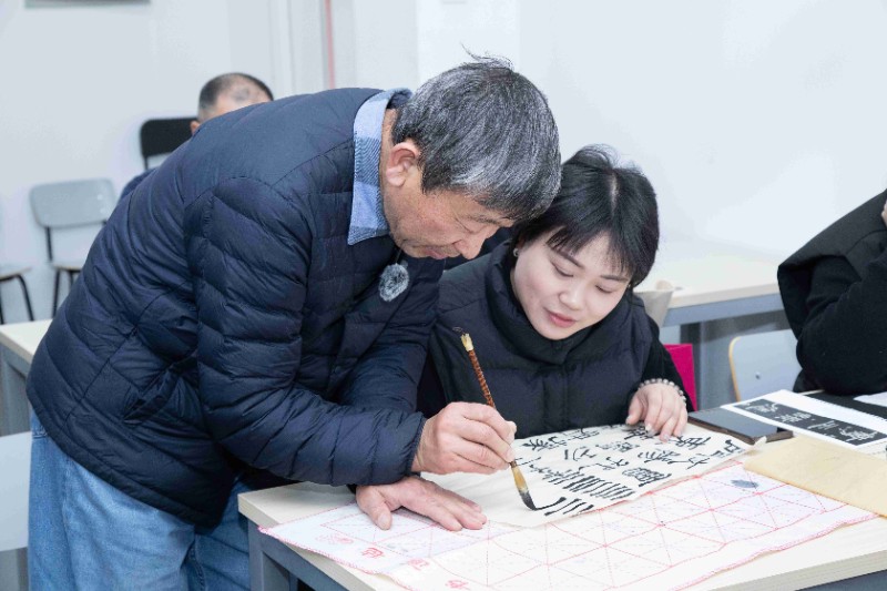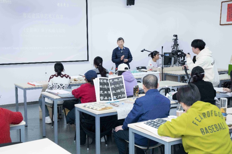 12 月 17 日下午,一场引人入胜的国学艺术书法课盛大举行。高福庭教授凭借其广博的学识和丰富的经验,为学员们深度剖析了隶书的精妙所在,呈上了一场极具意义的书法艺术知识盛宴。高教授阐述了从隶书起步的缘由。他表示,隶书笔法既具规范性,又不乏丰富变化,初学者借此能够扎实地掌握基本用笔技巧,培养对书法线条质感、形态及韵律的敏锐洞察力,为后续钻研其他书体筑牢坚实根基。正如古人所说:“学书须先楷法,作字必先大字。大字以颜为法,中楷以欧为法,中楷既熟,然后敛为小楷,以钟王为法。”而隶书,恰是开启这一书法学习之旅的重要通道。在阐释隶书用笔关键时,高教授毫无保留地传灵活变化。书写,依照字的结,强调笔画慢行,注重迟涩效应。运笔时注重节奏的把控,适度停顿缓行,营造出类似“迟涩”书写时的独特艺术韵律,使笔画在古朴之中现灵动,典雅之中显变化。理论讲解完毕,学员们当场挥毫实践。高教授不辞辛劳,逐一为学员进行细致入微的指导。他针对每位学员在用笔、结构、布局等方面存在的问题,耐心地予以纠正并提出建议,让学员们在实践操作中深刻领会隶书的书写要诀。“纸上得来终觉浅,绝知此事要躬行。”经由高教授的专业讲解与一对一的悉心指导,学员们不但在理论层面深化了对隶书的认识,更在实践中获取了珍贵的书写经验,书法技艺与审美水平均有显著提高,为他们在书法艺术的漫漫征程中迈出了坚实且富有成效的一步,同时也有力地促进了国学艺术在书法教育领域的传承与弘扬。