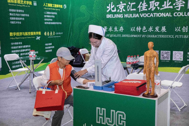 展会期间,护理与康养学院师生共同参与展会,全程积极投入专业宣传介绍与现场服务工作。团队围绕学院“培养高素质老年护理人才”的核心定位,向现场群众系统讲解“理论+实践+考证”三位一体的课程体系:核心课程涵盖老年基础护理、康复护理、心理照护、营养膳食搭配;实践教学依托15家三甲医院老年病科、高端养老社区实训基地,让学生深度参与真实护理场景;同时开设“老年护理员职业技能考证班”,实现“毕业即持证、上岗即上手”。这套“学练考用”一体化的培育模式,成为现场养老机构洽谈合作与家长咨询报考的核心关注点。