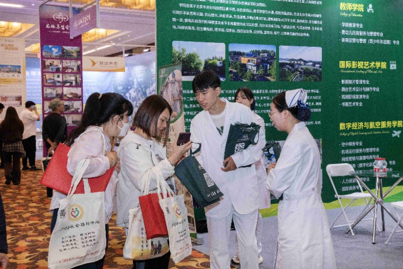 多年来,学校坚持“以质量求生存、以特色求发展、以创新求未来”的办学理念,围绕社会需求精准培育人才,累计为学前教育、影视创作、康养护理、航空服务、人工智能等行业输送数万名实用型人才。此次峰会现场,学校通过全景展板系统展示五大二级学院的办学成果,尤其突出跨学科协同优势——以护理与康养学院的老年护理专业为核心,联动开放大学开设书法、钢琴、声乐、绘画等中老年特色课程,形成“专业培育+惠民服务”的养老服务联动模式,直观呈现多维度赋能养老事业的综合办学特色,为后续招生咨询、专业展示奠定坚实根基。